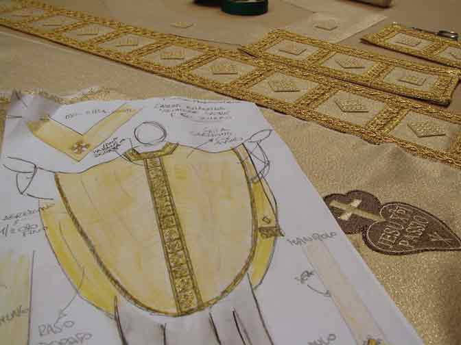 La mia preoccupazione quando ricevo l'incarico da un sacerdote è trasformare il suo stile liturgico, la sua visione del mondo e di sè stesso in un paramento.