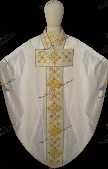 Ti consiglio di orientarti verso questa soluzione, se preferisci una casula in cui a risaltare maggiormente sia la decorazione di stoloni e collo.