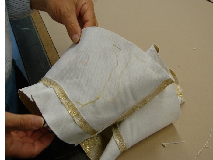 Qualche tempo fa un sacerdote mi affidò la risistemazione della sua casula dell'ordinazione. Essa era stata acquistata in un noto negozio romano e pagata fior fior di quattrini. La decorazione era costituita da croci ricamate ed INCOLLATE su di un pallio che definire approssimativo era un eufemismo.